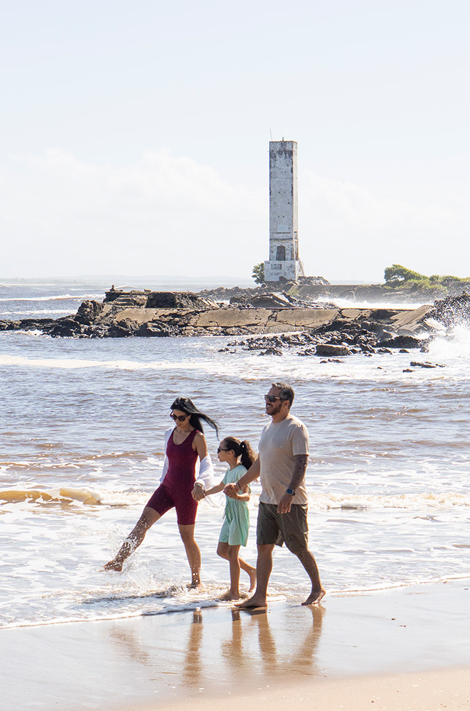 O mar, sempre presente na Praia da Concha, ensina lições de respeito, ritmo e cuidado. É uma infância conectada ao essencial, onde cada folha e cada onda e cada grão de areia se transformam em uma lição de vida, compartilhada em essência em família.
